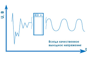 Стабилизатор напряжения автоматически поддерживает на нагрузке уровень напряжения в 220 В при отклонениях от нормы величины входного напряжения питающей сети. Он надежно защищает любую, даже самую капризную аппаратуру (плазменную панель, например) от внезапного значительного изменения в электросети, например, от скачка до 380 В или если сосед у Вас заядлый сварщик.